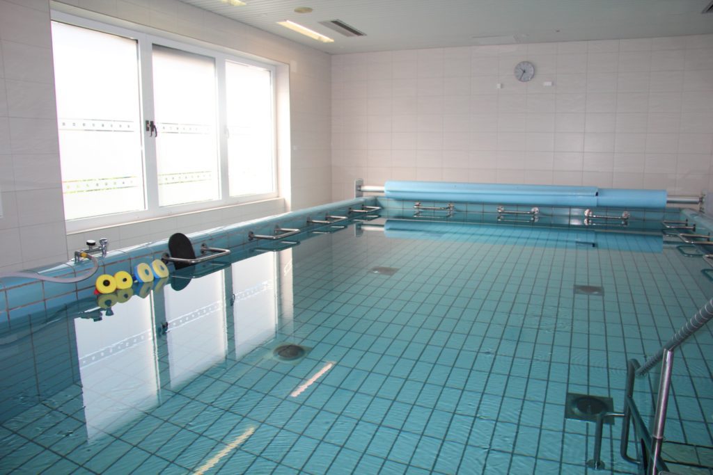Das Hellmig-Krankenhaus Kamen bietet uns die Möglichkeit, im hauseigenen Rehabad unsere beliebten Kinderschwimmkurse anzubieten. Das Schwimmbecken hat eine Wassertiefe von 1,20m, die Größe beträgt 8m x 4m. Die Wassertemperatur von rund 30 Grad ist für unsere Schwimmkurse und speziell auch für schnell frierende Kinder perfekt. Während der Schwimmkurse sind unsere Gruppen alleinige Nutzer des Bades, sodass sich die Kinder voll und ganz auf den Kurs konzentrieren können.